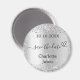 En Spara datum magneter till bröllop. En faux silver tittar bakgrund, svart text. Dekorerad med konfetti och ett litet hjärta. Anpassa och lägg till datum för namn och bröllop.