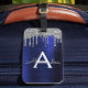 Silver Marinblå Glitter Glans Monogram Namn Bagagebricka