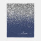 Silver och marinblå falskt glittermonogramnamn och initial ludd filt. Detta gör den perfekta söta 16-års födelsedags-, bröllops-, brud shower-, års-, baby shower- eller möhippa present för någon som älskar glamourösa lyx och chic stilar.