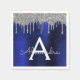 Silver marinblått Glitter Gnistra Monogram Namn Pappersservett