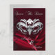 Vårt Silver Masquerade Röd Juvel Spara Datum Vykort är ett vackert sätt att meddela de goda nyheterna!