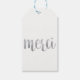Silver "merci"-favorittaggar, folie, lodrät presentetikett