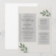 Denna Silver Mirror Akryl Bröllopsinbjudan Set visar tidlös sofistikering med en sammanhängande modern svit som visas på en mjuk neutral bakgrund med accentuerad naturlig grönska. Designad för par som älskar raffinerad elegans, innehåller denna samling alla tre koordinerade kort: