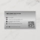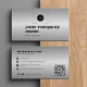 Trendy modern company name and custom logo elegant faux silver grey brushed metallic business card with bold typography and social media icons.