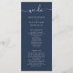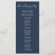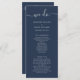 Elegant marin blått och silver bröllopsprogram med ett modernt skriptteckensnitt. Matchande objekt är tillgängliga.