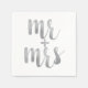 Silver, Mr. & Mrs. cocktail napkins, foil font Pappersservett