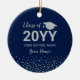 Denna moderna keramiska utsmyckning för examen har silvertypografi "Klass av 20YY" och en grafik av en examensmössa med konfetti i bakgrunden. Du kan anpassa texten. Fler färgalternativ och anpassade examenspresenter finns i min butik BaraBomDesign.