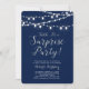 Fira en speciell dag med denna moderna inbjudan till överraskningsfest! Designen har en stilren silverglittertypografi och ljussträngar på en marinblå bakgrund. Du kan anpassa den till valfri ålder eller händelse.