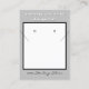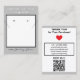 Handmade Jewelry by Name typography at top in white. Elegant silver color background. 100% Steering Silver written in black script (keep or insert short tagline, or delete to leave area blank). Two Small Circles against white and black framed background. NOTE: Circles and Lines on each side are not pre-cut, you will need to use a small hole punch, and scissors or box knife cutter type to make clean cut holes and small slits, to then place your Earring Studs and Necklace in. Backside has small red heart. Insert telephone number, email address, website, social media handle, as needed. Insert Your Business QR Code for customers to Shop 24/7, or delete as needed. Original Design by TamiraZDesigns.