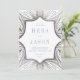 Silver och den blå konsten Deco Inbjudan, delikata teckningar i silver faux runt en unik enkel textlayout. Perfekt för ett sommar- eller vinterbröllop, med delikat dammiga blåmärken och antika effekter silver ram.