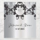Personlig vin-etikettdesign med stiliserad baroque black och silver gräns på en passande silver-bakgrund. Texten är helt och hållet anpassade.