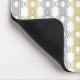 En elegant mönster med geometriska former i silver och guld, som är sammanlänkade med en rad linjära, snöre-strömmare.