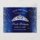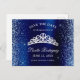 En elegant silver och blåtemat Quinceanera sparar vykortet för datum. Observera att uppgifterna om folie och glitter simuleras.
