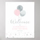 Välkomna din gäst med den här söta moderna välkomstskylten för babyduschen. Den här poster designen har snyggt-typografi och ballonger med konfetti på temat silver och rosa färg. Perfekt party dekoration för en flickdusch. Matchningsinbjudningar och party-tillbehör finns på min butik BaraBomDesign.