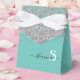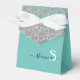 Silver och Teal Monogram Aqua Blå Glitter Presentaskar