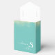 Djup aqua med en ren strandstrandstrandstrandstrand tvärs över dekorationen. Behålla mellanrummen före och efter anpassar namn för kalligraferna. Monogram Namn och de första Pappra Party Gift Boxes gör perfektens bröllop vid kusten eller på stranden, möhippa, årsdag, babydusch eller bachelorette-festgåva till någon som kärlek på havsstranden och chic stilar.