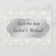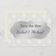 Informera kunder om ditt evenemang med denna silver och vit bröllops kallelse. Med information skriven i mallar köp din idag!