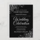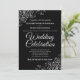 Den här vackra bröllopsinbjudan har en enkel utformning av silver eller grått-elegant på en svart bakgrund med en blommigt av silver faux-folie i hörnen. Designat att samordna med vår Silver Foil Elegant bröllop Suite har den en formell ordalydelse med ett chic-skript.