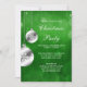 En modern inbjudan till julfesten som innehåller silver snöflammande prydnadsämnen på en grönt med båda bakgrunder. Perfekt för en företagsklara julfest, julfest av företag, julfest av företag, insamling och mycket mer! Anpassa enkelt med din händelseinformation. Utformningar är platta tryckta bilder/grafik - INTE FAKTISK SILVERFOLIE.