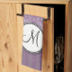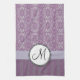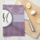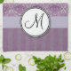 Silver på lavendeldamast med randar & monogramen kökshandduk
