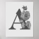 Silver Peony Elegant Monogram Initial A Poster