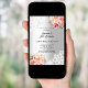 For an elegant and romantic 25th wedding anniversary. A faux silver looking background decorated with pink and rose gold florals, roses and white lace. Personalize and add your names and details.