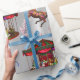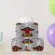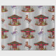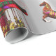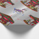 En underbar julomslutning papper med en vintage karusell, komplett med prancing, målad karusellhäst. Det finns också sprinklingar av röda stjärnor på en metallisk övertoningsbas i silver för ett tillsatt festivt utseende. Den här söt retro-karnevalen av en musikalisk karusell på silver kommer att se underbar sitta under träd för jul.