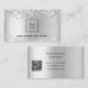 En faux silver tittar bakgrund. Dekorerad med konetti. Anpassa och lägg till din logotyp och en text på framsidan. Tillbaka: Mallar för ditt namn, titel, mobilt nummer och egen QR-kod.