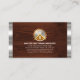 Ett trävirke lagrar accentueras av faux silver rand på kortets sidor. Över överkanten är en logotyp med kreativet "elsågplats" som du kan använda. Mot basen är namn med en slogan-bildtext. Du kan ändra textkommentarerna till slogan till kostym för dina egna tjänstebehov. På andra sidan används samma konstruktionshölje med logotypen överst. Detta följs av namn, kontaktinformation och ett slogantaggradsalternativ för att publicera dina tjänster. En underbar design för alla för använda, särskilt för företag som arbetar med skog och handyman. handyman, byggnation, hembygge, hemreparation, byggande entreprenör, homebuilding, ombyggnad, handyman verktyg, inredingsdesign, byggnad, #handyman #uppbyggnad #homerepair #byggherre #homebuilding der #omdeling #handymanTools #Inredordesign #byggnad