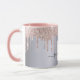 Elegant, glamorös gåva till en vän, mor, syster eller dig själv. Metallisk bakgrund i Daux silver. Trendig ro guld, rosa faux glitter droppar, färgdroppstift. Anpassa och lägga till namn och monogram brev. Namn är skrivet med ett handskript i stil med dekorationer. Ro guld och svart färgad brev. Om du bara vill behålla utslagen tar du bort exemplet namn lämnar du blankstegen eller symbolerna framför och efter namn.