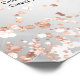 En sittplats för en bröllop. En snyggt faux silver tittar bakgrund som dekorerats med ro guld konetti. Anpassa och lägg till namn i bruden och brudgummen, lägg till dina gäster namn.