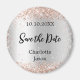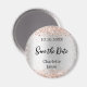 En Spara datum magneter till bröllop. En faux silver tittar bakgrund, svart text. Dekorerad med ro guld konetti. Anpassa och lägg till datum för namn och bröllop.