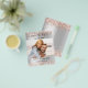 Observera att det här Spara datumet är pappert och mycket tunt. Kuvert ingår inte. Om du vill ha ett tjockare Spara datumkortet (samma design) kan du besöka vår butik. Ett modernt bröllop spara datum-foto. En faux silver tittar bakgrund som dekorerats med ro guld faux glitter, gnistor. Anpassa och lägg till ditt foto, information om bröllop.