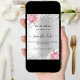 En modern och elegant Spara datum för ett bröllop. En faux silver tittar bakgrund som dekoreras med rosa och vita blommor och konetti. Anpassa och lägg till ett datum och din namn. Texten: Spara datumet skrivs med ett stort trendig-handskript i stil.