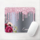 Silver rosa glitter droppar metalliska blommigtar musmatta