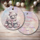 Här är en vacker keepy-prydnad för den speciella dottern, brordottern eller barndottern! Framsidan har en bild av en nalle i silver som är klädd i en vinter-sockel i blekens rosa och en vinter i våtmarken. Han är omgiven av rosa och silver dekorationer. Bilden placeras på en rosa-, lavender- och blå bakgrund. Baksidan av dekorationen har samma bakgrund med flera fält som du kan anpassa. Säg spelar ingen roll att du vill!