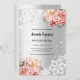 För en elegant 60:e (eller någon ålder) födelsedagsfest. En faux silver tittar bakgrund som dekoreras med blommigtarna rosa och ro guld, rosor, diamanter och vita snöre. Anpassa och lägg till namn och information.