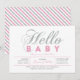Fira en speciell dag för din nära och kära med denna moderna bebisfest-inbjudan! Denna design har enkel men stilren typografi " Hello Baby" med rosa & silver glitterstruktur.