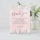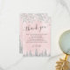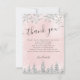 Dags att fira din vintervonderland tack bröllopsdusch tema med denna lyxiga silver glitter snöflingor gnistrar och silver glitter tall skog på en elegant festlig falsk rosafärgad metallisk bakgrund, med en modern cool typsnitts typografi.