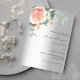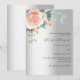 En falsk silverfärgad bakgrund. Dekorerad med en rose gold och rosafärgad blommig, rosblomma och gröna vattenfärgade eukalyptusblad, kvistar, grönska och falska gyllene kvistar. Personifiera och lägg till era namn och bröllopsdetaljer.