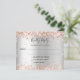 En falsk silverfärgad bakgrund, dekorerad med roséguld konfetti. Anpassa och lägg till svarsdatum och era namn.
