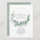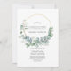 Forest Eucalyptus greenery Firande of Life-inbjudan med guld-geometrisk vattenfärg för ram och silver tvättar omvänt anpassade till dina händelsespecifikationer.