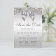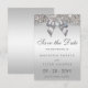 Elegant anpassningsbar bröllop spara datum med ett vackert tryckt silver-följkort mönster, en söt, glansig silver-tryckt båge och band och söt tryckt diamanthaltig juvel. Vackert, chic, trendig, moderna inbjudningar. OBSERVERA: Det här är platt tryckt grafik - inga verkliga bågar, sekvenser eller upphöjda delar. Text, teckensnitt och färg i teckensnitt kan anpassas. Om du behöver hjälp med att anpassa produkten kontaktar du mig genom min butik. Jag kommer att vara lycklig för att hjälpa till. Jag har matchande produkter i min butik.