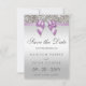 Elegant anpassningsbar silver och lilac bröllop spara datum kort med vackra tryckta silver-sekviner mönster, en söt glansig lilak med tryckt båge och band och söt med tryckt diamantbläckjuvel. Vackert, chic, trendig, moderna inbjudningar. OBSERVERA: Det här är platt tryckt grafik - inga verkliga bågar, sekvenser eller upphöjda delar. Text, teckensnitt och färg i teckensnitt kan anpassas. Om du behöver hjälp med att anpassa produkten kontaktar du mig genom min butik. Jag kommer att vara lycklig för att hjälpa till. Jag har matchande produkter i min butik.