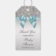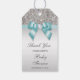 Silver Sequins Teal Diamond Bow Baby Shower Presentetikett