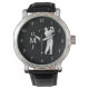 Här är en attraktiv klocka som är perfekt för golf fläkt! Den har en glansig silver-silhouette-golfer i fullt som svänger i mitten, och hans trippelmonogram i matchningen av silver går lodrätt på den lämnat sidan. Siffrorna finns också i silver, och allt placeras i en dramatisk svart bakgrund.