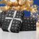 En svart sammansatt väv täckt av blanka, metalliska silver-stam.