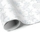 Elegant silver snöflumma mönster mot vit bakgrund.