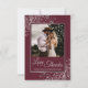 Det vackra burgundi- och grått färgad-bröllop-tacket som du har visar ditt foto i en faux foil silver ram som omges av ornat snöre och snurrar vid silver. Rubriken lyder: Kärlek och Tack, med namnen nedan. Det här tackkortet är enkelt, snyggt och elegant, och det är det perfekt sättet att tala om för dina vänner och din familj hur mycket du uppskattar deras kärlek och stöd.