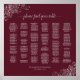 Det här vackra sätesschemat i bröllop har blek grått-text på en burgundisk eller maronbaserad färgad med sittplatser för 200-240 gäster. Den har en enkel men ändå snyggt- och elegant utformning med dekorativa faux foil silver-filigree i hörnen. Titeln skrivs i finare-skriptkalligrafi och lyder: Sök efter bord.